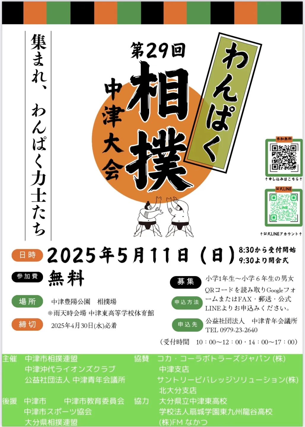 場所:中津豊陽公園相撲場(雨天時 中津東高等学校相撲場)